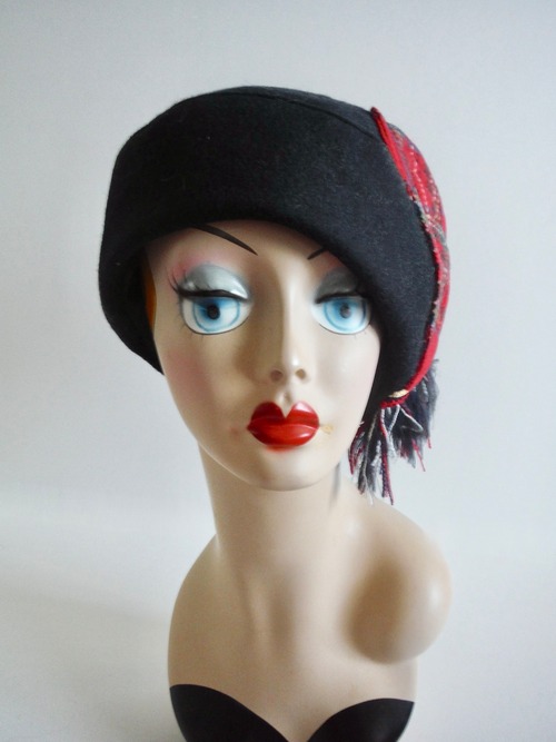 大きなハートとフリンジが印象的なウール地のベレー帽です。